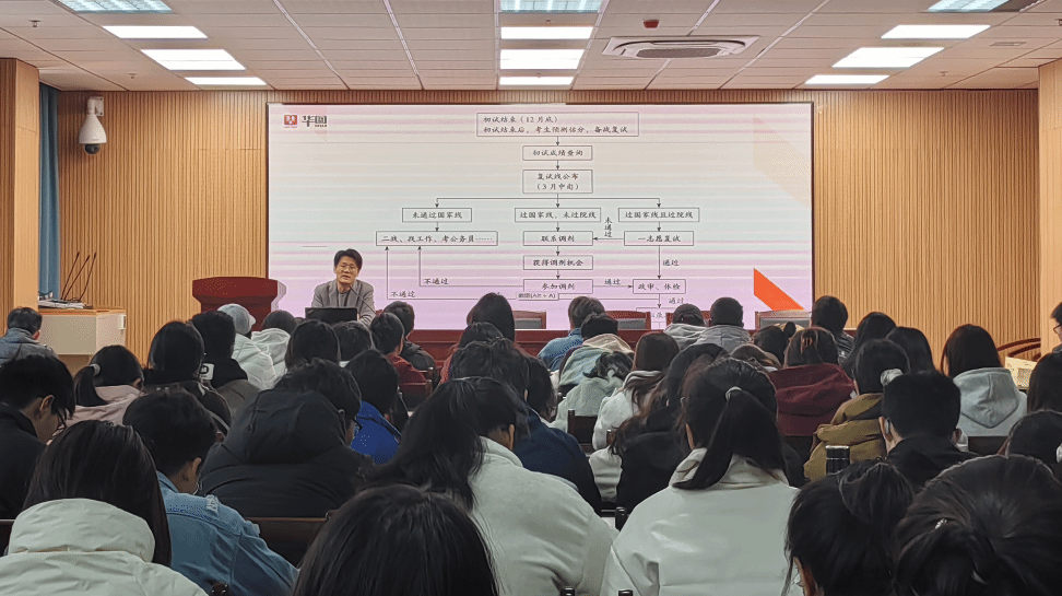 为进一步做好英国365集团2024届毕业生考研复试指导工作,近日,英国365集团在o楼102教室举办考研复试专题讲座,邀请华图教育考研资深指导专家程老师担任主讲人,为考研学生在复试备考环节进行查缺补漏,提供科学备考攻略。英国365集团毕业班及各年级120余名学生代表参加了此次讲座。