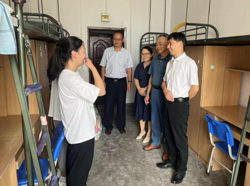以心育人,关爱学生。学院高度重视学生宿舍环境建设,在2022级新生开学前,积极联系学校有关部门,帮助协调解决学生公寓存在的硬件设施维修等问题,组织学生志愿者打扫宿舍卫生,为新生们购置物品架、卫生工具等,以良好的面貌迎接新生入学。学院领导还带领辅导员,不定期深入学生宿舍走访慰问,检查指导,主动关心关注学生思想动态、学习情况和生活状况,勉励学生德法兼修、励志勤学、锐意进取、奋发图强,保持良好的学习和生活习惯。