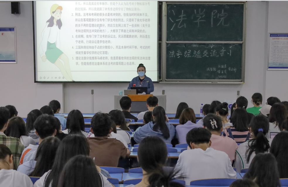 “法律职业资格考试经验交流会是我们院的一个传统会议,每年都会邀请成功上岸的学长学姐们为大家分享考试经验与心得。”活动负责人法学类专业2021(3)班的刘多文介绍,开展此次经验交流会,希望同学们能系统全面了解法律职业资格考试,搭建一个良好的沟通交流平台,从而达到取长补短、共同进步的效果。(撰稿:学生记者 唐洁 贾睿雯摄影:学生记者 王俱进 王若男 审核:从光梅)