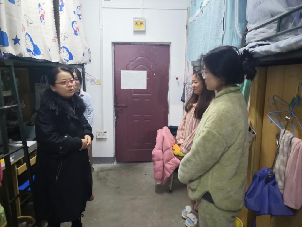 钱敏带领辅导员深入各学生宿舍,了解学生线上课程情况,关心关注学生近期思想学习生活状况,并对疫情防控规定和政策进行了耐心解释,鼓励引导同学们保持乐观向上的心态,坚定信心信念。同时要求同学们严格遵守学校疫情防控规定,做到非必要不外出,提高安全意识,做好个人防护;严格遵守宿舍“六个严禁”,增强消防安全意识,不存放、不使用大功率电器,确保生命财产安全。要求学生党员发挥带头作用,做好情况摸排,排查各类安全隐患,积极帮助引导学生稳定心态。