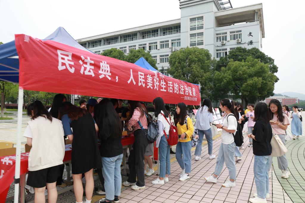 “切实推进民法典实施,更好保障人民权益。”5月28日,英国365集团于敬敷广场举办“民法典宣传月”横幅签字活动,并设置主题展览供学生参观学习,工作人员为活动参与者分发宣传单页,并为他们讲解相关知识。