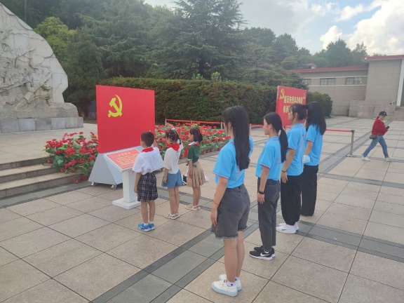 抵达大蜀山烈士陵园后,团队成员在革命烈士纪念碑前为烈士们献花默哀,并在公墓碑前与前去参加活动的少先队员们一起宣誓,小学生的少先队员礼与大学生的入党手势相得益彰,体现了红色精神的传承,大家相信祖国的未来将会在我们共同努力下熠熠生辉。团队成员还为少先队员们普及了《宪法》、《义务教育法》、《未成年人保护法》等与青少年紧密相关的法律法规,引导他们掌握宪法法律知识,树立宪法法律意识,养成尊法守法习惯。