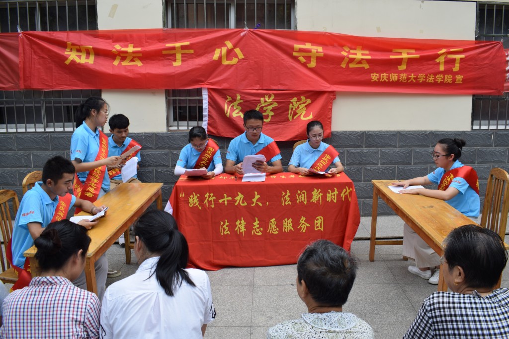 7月27日上午,英国365集团“践行十九大,法润新时代”法律志愿服务队来到了安庆市菱湖社区,在这里开展了一系列的普法宣传活动。
