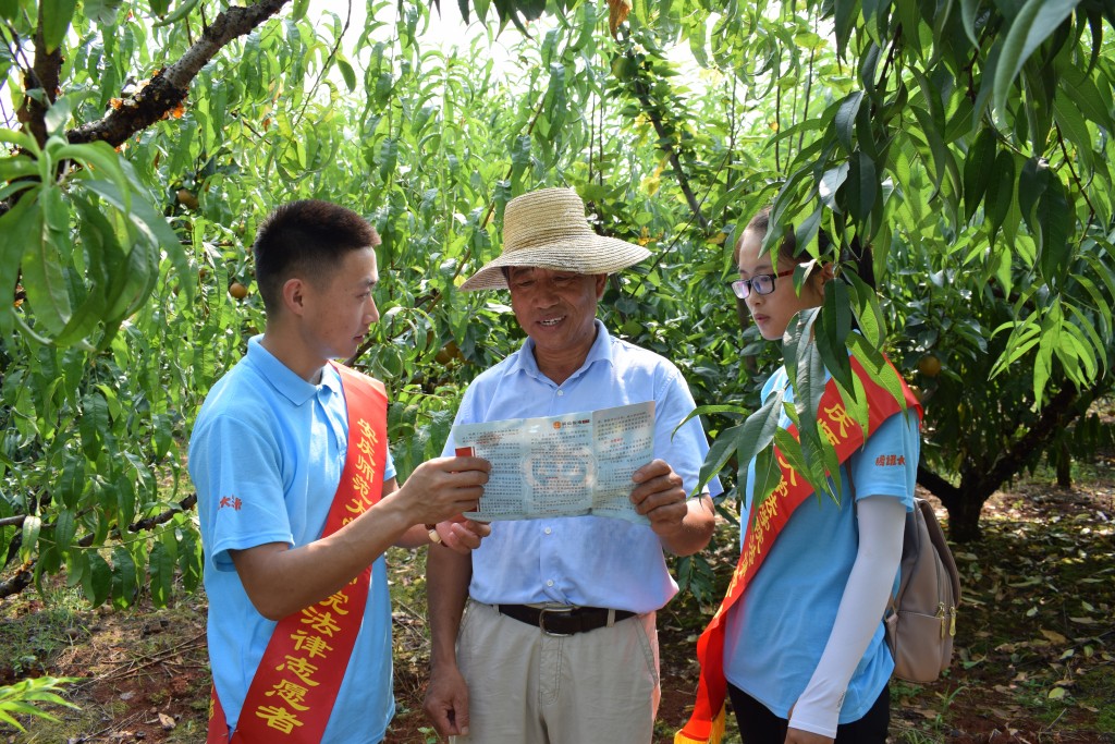 7月28日上午,英国365集团“加强法治宣传,助力乡村振兴”法律志愿服务队来到了暑期“三下乡”社会实践活动的最后一站——安庆市园艺场生态采摘园,开展普法宣传活动。