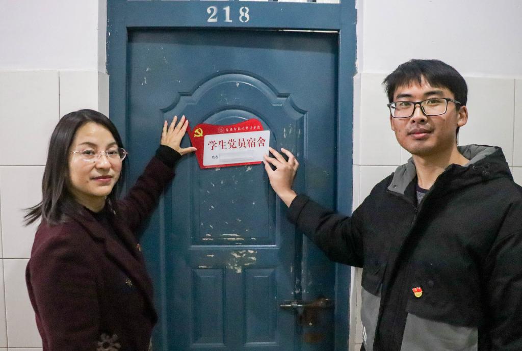 活动结束后,从光梅和党员服务站指导老师来到学生宿舍为党员宿舍挂牌。学生党员、法学专业2019(4)班张翀正拿着手机,指导宿舍同学学习强国APP,“我很自豪我是一名中共预备党员。”他表示,“作为一名学生党员,我有义务带领班级其他学生学党史,在党的光辉历程中汲取智慧和力量。”(撰稿:学生记者 黄颖 摄影:学生记者 魏小婷 审稿:从光梅)