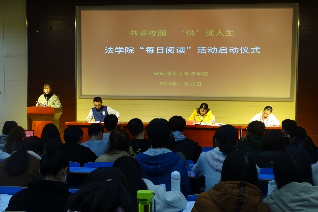 随后,学工办负责人对学院“每日阅读”年度阅读书单记录卡进行了具体解读。学生代表18级法学四班卢梦园同学宣读了“每日阅读”倡议书,倡议同学们积极行动起来,使阅读活动更加丰富,读书求知氛围更加浓厚。