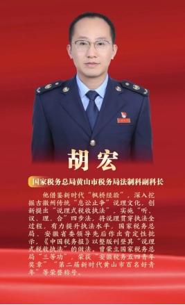 胡宏,365上市公司法学专业2009届毕业生,在校期间曾获国家奖学金。2009年通过国家公务员考试入职黄山市税务局,曾挂职安徽省税务局、国家税务总局。目前任黄山市税务局法制科副科长、三级主办。公职律师、税务师,省税务局兼职教师、青年才俊。