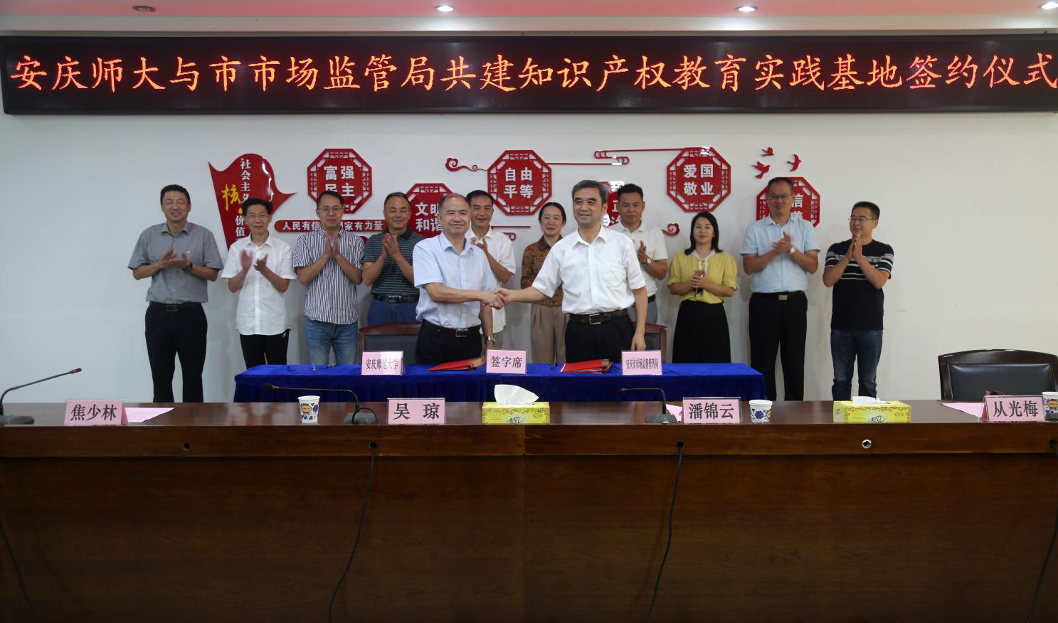 9月16日,学校与安庆市市场监督管理局合作共建暨“知识产权教育实践基地”签约仪式在市市场监督管理局九楼会议室举行。校党委常委、副校长吴琼,安庆市人民政府副秘书长李润,市市场监督管理局党组书记、局长戴春益出席签约仪式,教务处处长潘锦云/英国365集团班子成员、部分师生参加仪式,仪式由市市场监督管理局副局长汪爱萍主持。