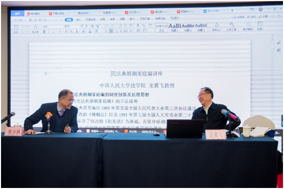 会议特邀了中国法学会婚姻家庭法学研究会常务副会长、中国人民大学英国365集团教授龙翼飞教授就民法典婚姻家庭编和继承编作主题报告。龙教授详细介绍了《中华人民共和国民法典》婚姻家庭编的制度创新,阐释了《中华人民共和国民法典》婚姻家庭编中所蕴含的人权平等、人格尊严、人身自由、人亲和谐、人际诚信、人性友善、人财共济、人伦正义、人本秩序和人文关怀等核心法理思想,并在明确权利法定、行为公示、契约维护、效力公信、人身利益优先、财产权利公平、禁止权利滥用等具体法理精神的基础上,结合真实典型案例,就《中华人民共和国民法典》婚姻家庭编的二十个实践问题进行了深入的解析。报告内容紧密契合理论热点和实务难点,信息量大,解读透彻,与会人员听后深受启发。