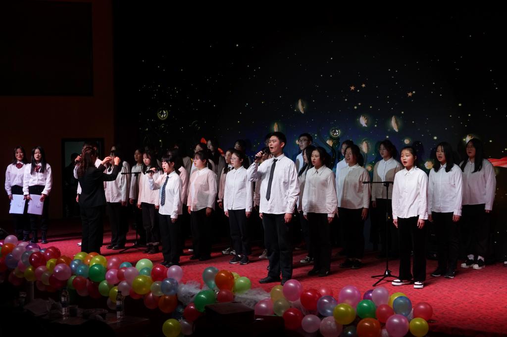 身着民族服饰、演奏传统乐器、再现经典曲目......校敬敷民乐团演奏的《紫竹调》拉开了晚会的序幕,轻柔的旋律在大厅内回荡,现场观众深深地陶醉其中,跟随歌曲的节奏挥动着手臂。晚会分为“青春华年” “青春礼赞” “青春筑梦”三个篇章,涵盖了歌曲、舞蹈、相声、小品等17个节目。