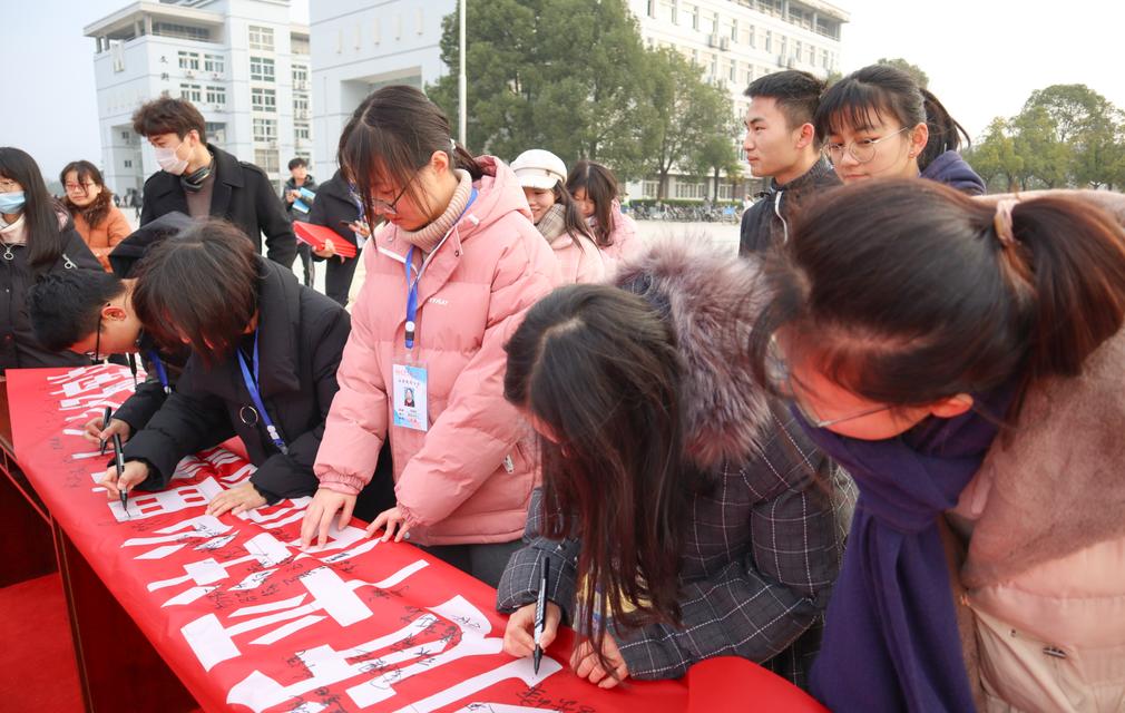 活动最后,全场师生在本次宣誓活动横幅上签名。(撰稿:学生记者 张忍龙 邓宇 摄影:学生记者 徐巴超 胡蝶 蔡醒 王嫚嫚 审稿:从光梅 )