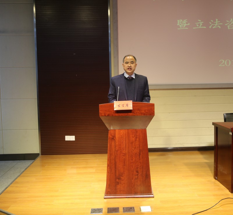 院长焦少林作为立法联系点代表和立法顾问在发言中,代表我院全体师生衷心感谢市人大常委会将我院作为立法联系点,聘请我院教师为立法咨询专家、立法顾问。他在介绍了我院的发展情况后表示,安庆市人大常委会将我院作为立法联系点并聘请我院教师为立法顾问、立法咨询专家,是对我院法学教学科研工作的鼓励,也是对我院提供服务安庆市经济社会和立法工作能力的信任,必将有利于促进我法学教学科研水平的提高和服务社会能力的提升。作为立法联系点,我院将利用我校的法学教育资源和人才优势,竭力为安庆市人大常委会立法工作服务。初步设想是:在安庆市人大常委会领导、指导下,以项目为主要依托,主要开展提供立法民意收集与反馈服务、立法专题咨询与研究服务、立法质量与效果评价服务和立法联系点志愿者服务。