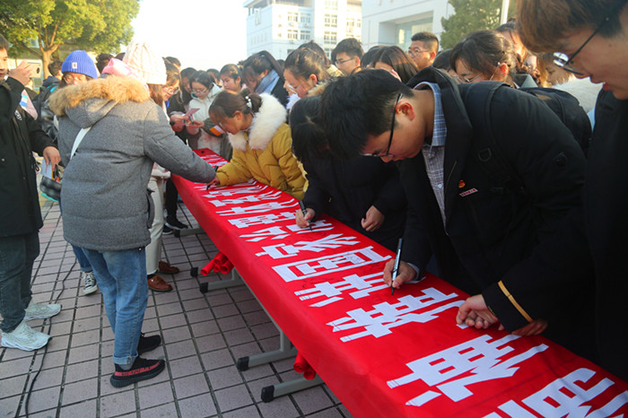 最后,在场师生在宣誓活动横幅上签名。(文/学生记者 邓宇 图/学生记者 徐巴超)