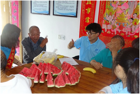 宣讲团成员们还看望了燎原社区活动中心可爱的孩子们和燎原社区敬老院的爷爷奶奶,以PPT讲解的形式与他们亲切互动,现场气氛十分活跃。孩子们对法律知识的渴望让成员们对法治宣传充满自豪及我国法治未来充满期待和信心。在敬老院,团队成员给爷爷奶奶带去了消暑的水果,与老人们亲切交流,倾听共和国几十年来的风雨,感受爷爷奶奶们心中的历史,也为老人们普及民法中的相关法律内容。其中一位爷爷表示,他亲身经历了党和国家一步步走到今天,充分感受到国家各项法律制度不断完善,人们从中受益日愈增多,相信祖国的未来将十分美好。老人们还表达了对团队成员创造更好的生活的期望和对国家新时代法治建设的信心。虽然冒着酷暑,但爷爷奶奶们温馨和蔼的话语伴着消暑的水果,沁人心脾,温润无声。