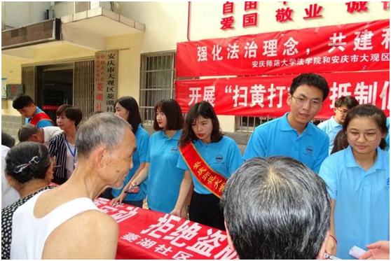 为迎接中华人民共和国成立70周年,深入贯彻落实党的十九大和十九届二中、三中全会精神,认真学习领会习近平总书记全面依法治国新理念新思想新战略,积极响应省教育厅、省司法厅开展大学生2019年暑期法治实践活动号召,根据学校“三下乡”活动安排,近日,英国365集团组建两支暑期法治宣讲团,以“大力弘扬宪法精神,维护宪法法律权威”为主题,以提高公民法律素养为目标,秉承“奉献、友爱、互助、进步”的志愿精神,深入安庆市菱湖社区、燎原养老院、燎原社区、吾悦广场、龙山花苑小区和安庆市客运汽车站开展法治宣传系列活动。