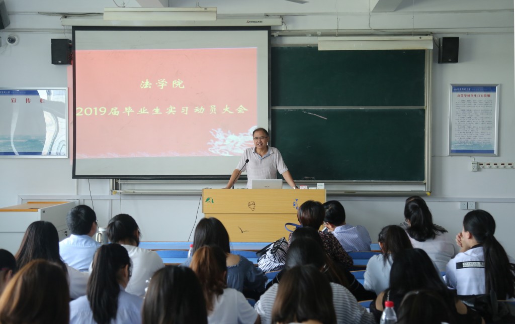 9月25日上午,我院2019届毕业生实习动员大会在文津楼举行。院长焦少林、党总支书记詹德全、副院长朱留虎、党总支副书记从光梅、法学实验实训中心人员、全体实习指导老师、毕业班辅导员以及2019届全体学生参加了大会。