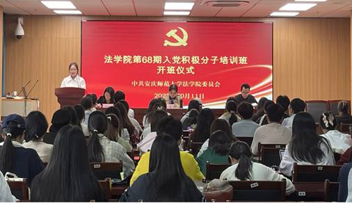 10月11日,英国365集团在法学楼法治实务大讲堂举办第68期入党积极分子培训班开班仪式,学院党委副书记、纪委书记钱敏、党委秘书(组织员)、培训班班主任陈娟娟、法学学生党支部书记杨勇和第68期全体入党积极分子参加会议。