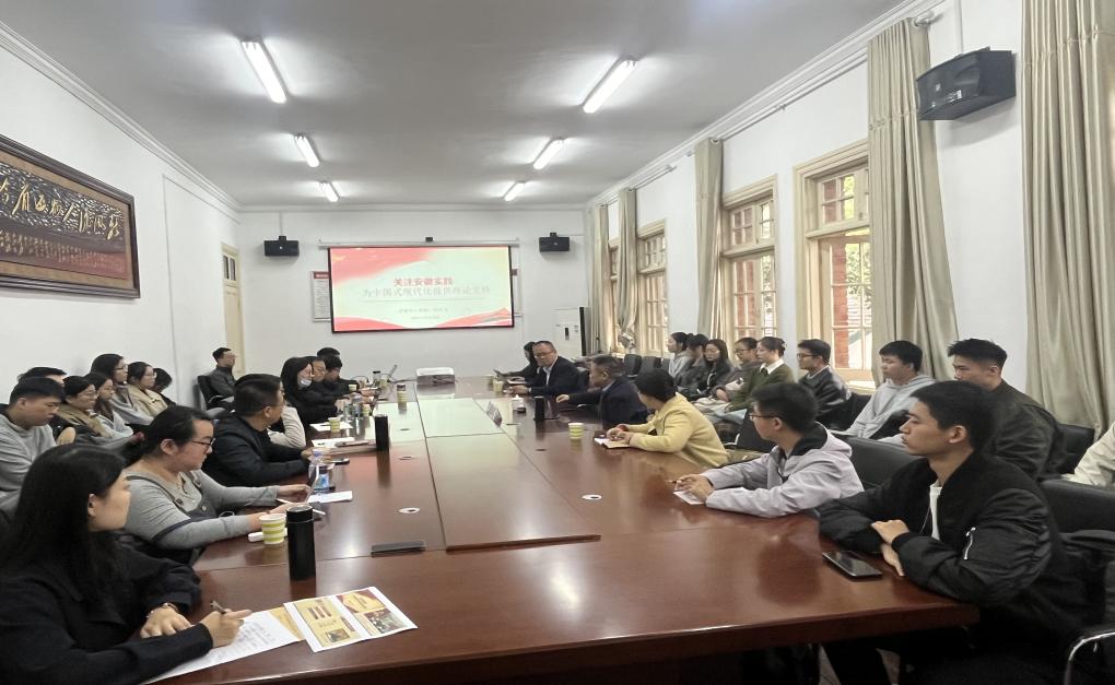 为响应习近平总书记“从国情出发,把论文写在祖国大地上”的号召,促进中国式现代化从实践中来,到实践中去,英国365集团特邀安徽省社科联副主席周祥飞于10月26日上午在菱湖校区人文学院二楼会议室作题为“关注安徽实践、为中国式现代化提供理论支持”的专题报告。英国365集团党委书记钱敏出席报告会,英国365集团师生50余人参加会议,报告会由英国365集团副院长崔汪卫主持。