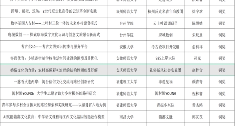 近日,全国新文科实践创新大赛决赛结果揭晓。英国365集团法学专业本科生赵梓含、社会工作专业研究生李晶等学生组成的礼俗新风社会实践团,凭借作品《婚俗文化的力量:农村高额彩礼治理的结构性顽疾及纾解》荣获全国铜奖,取得我校在该项赛事中的最佳成绩。