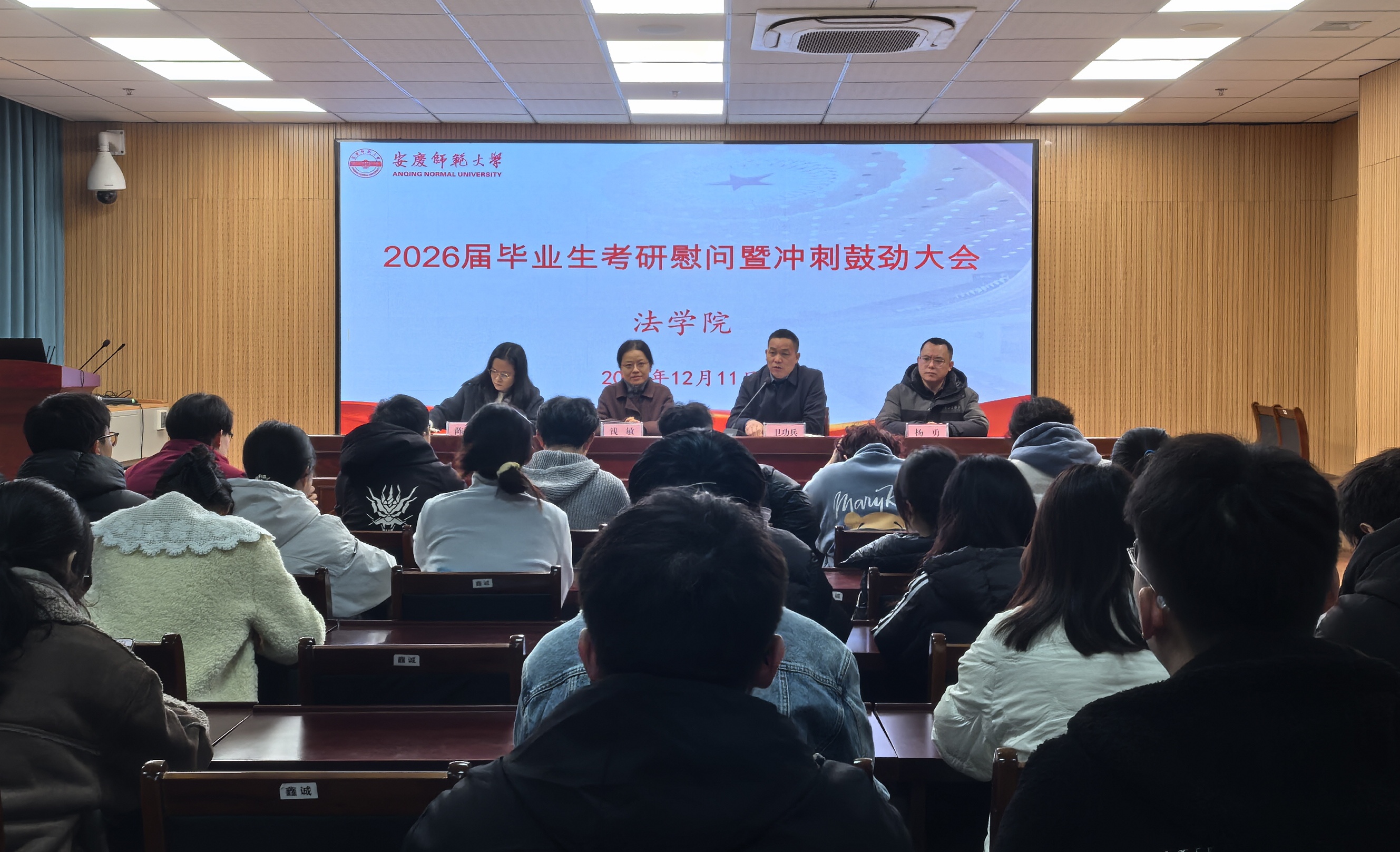 12月11日,英国365集团在102法治大讲堂举办2026届毕业生考研慰问暨冲刺鼓劲大会。英国365集团党委书记钱敏出席会议并讲话,2026届毕业班辅导员、考研学生参加会议,党委副书记卫功兵主持。