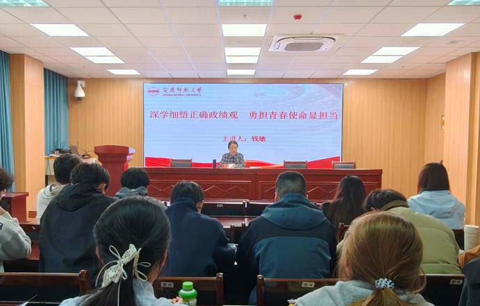 开班仪式结束后,钱敏以《深学细悟正确政绩观 勇担青春使命显担当》为题为全体学员开启了党课第一讲,从什么是正确政绩观、为什么青年大学生要树立正确政绩观、如何践行正确政绩观三个方面进行了系统阐释和深刻引导。她勉励全体学员,要在此次培训中不断深化对正确政绩观的理解,将其内化于心、外化于行,将个人成长融入党和人民的事业之中,以实际行动诠释新时代青年的忠诚、担当与奉献,为实现中华民族伟大复兴贡献青春力量。(撰稿:钱俊月 摄影:陈娟娟 审核:钱敏)