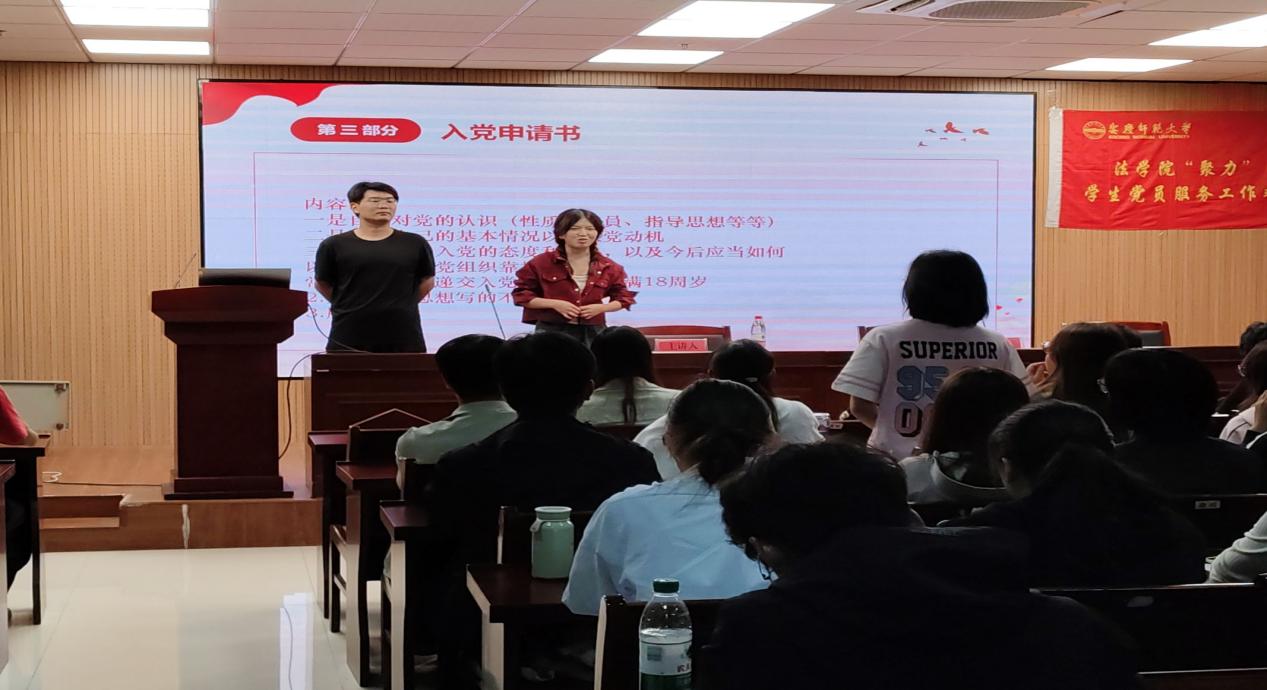 活动特别设置解疑答惑环节,新生们踊跃参与。2024级法学专业(2)班刘璟怡就“如何写出一份合格的入党申请书”提出疑问。张文君建议学弟学妹们在入党申请书中要介绍自己的基本情况,清楚地表达对党的认识以及表明入党的态度和决心。2024级知识产权专业(1)班的朱雅轩感叹道,讲座的内容可谓是干货满满,学姐学长毫无保留的分享让自己受益良多,也明白端正入党动机的重要性,表示在接下来的学习生活中不断充实自我,完善自我,积极奉献,为早日成为一名光荣的共产党员而加倍努力。