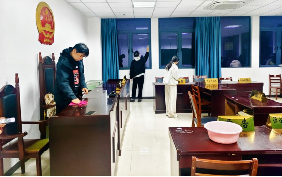 为营造整洁、有序的模拟法庭实训氛围,大学生青年法学会联合英国365集团六尺巷学生事务服务中心成员开展劳动实践教育活动。同学们分组对模拟法庭的审判台、旁听席、文书资料室进行全面清扫,整理法律书籍、规整庭审道具、擦拭设备仪器,将劳动教育与专业场景深度融合,在动手实践中体会劳动价值,为后续模拟庭审、教学实践的开展提供良好环境保障。