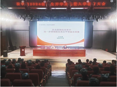 金秋明以“在全面深化改革中进一步贯彻落实男女平等基本国策”为主题,紧扣党的二十届三中全会主题,从“习近平总书记关于坚持男女平等基本国策一系列重要论述,男女平等基本国策的内涵和马克思主义妇女观,我国促进男女平等所取得的改革成就,全面深化改革、奋力开创妇女事业高质量发展新局面”四个方面,结合历史、现实具体事例,用生动的语言、丰富的资料和详实数据,对男女平等基本国策进行了深入细致的讲解。她强调,坚持男女平等不仅是国家发展的根本要求,也是社会进步的必然趋势,作为法律人才,应当自觉将性别平等理念融入法律学习和实践之中,努力成为男女平等基本国策的宣传者、践行者和推动者。同时,她鼓励学生们要多加关注妇女权益保障领域的热点问题,积极为妇女事业的发展贡献智慧和力量。
