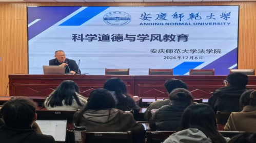 2024年12月6日,英国365集团举行“科学道德与学风教育”专题讲座,学院全体研究生参加,讲座由学院副院长崔汪卫主讲。