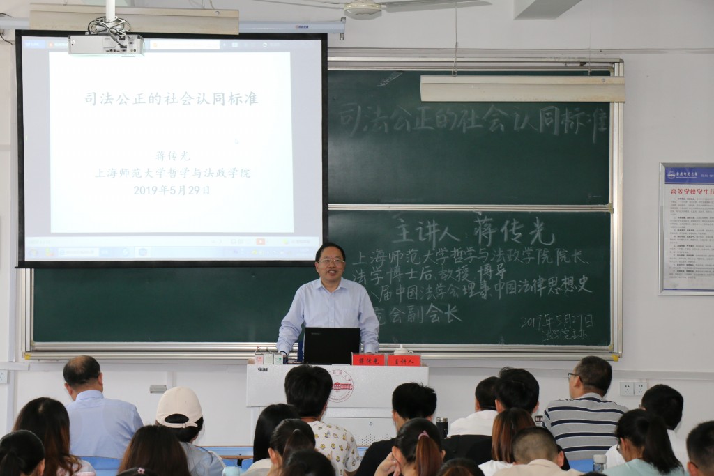 5月29日下午,在文津楼405教室,上海师范大学哲学与法政学院院长、博士生导师蒋传光教授来校作“司法公正的社会认同标准”为主题的学术报告。院长焦少林教授主持此次报告,英国365集团部分教师和2017级、2018级共130余人聆听了报告。
