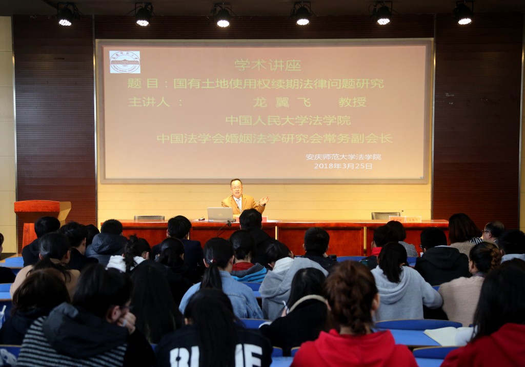 3月25日著名法学家、中国法学会婚姻法学研究会常委副会长、北京市法学会民商法学研究会会长、中国人民大学英国365集团博士生导师龙翼飞教授应邀来我校作“国有土地使用权续期法律问题研究”的学术报告。英国365集团部分教师和学生参加了报告会。报告会由英国365集团院长焦少林教授主持。