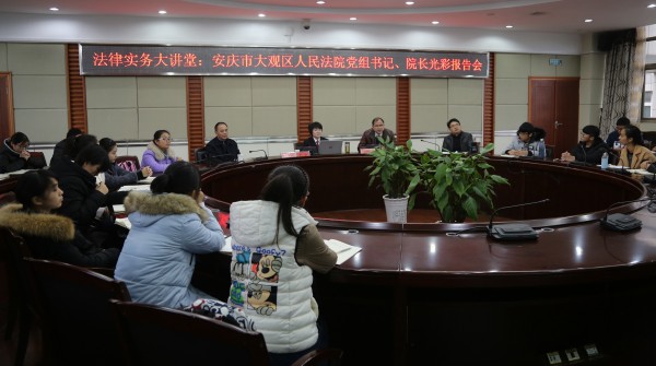 11月23日,安庆市大观区人民法院党组书记、院长,我校兼职副教授光彩同志应邀莅临法律实务大讲堂,以《坚守 智慧 善良 勇气——谈优秀法律人的基本素养》为题作专题报告。英国365集团部分教师和2016级法学专业学生参加报告会。报告会由英国365集团院长焦少林教授主持。