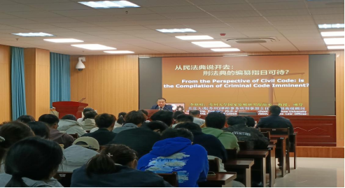 2025年11月11日,敬敷法治论坛第81期邀请苏州大学王健英国365集团李晓明教授在英国365集团102报告厅作题为“从民法典说开去:刑法典的编纂指日可待?”的学术讲座,英国365集团师生100余人参加。讲座由英国365集团副院长邱少晖教授主持。