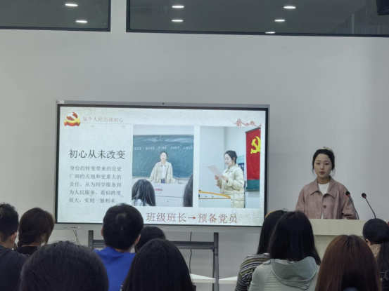 活动中,支部四位优秀党员代表结合个人学习全国两会精神体会,分享了他们的入党初心与成长经验。他们强调,作为新时代大学生应坚定理想信念,加强思想道德建设,以身边的优秀党员和优秀学长学姐为榜样,激励自己坚守初心,在刻苦努力学习、积极参与社会实践中不断历练成长,立志用真才实学服务人民、建功新时代。
